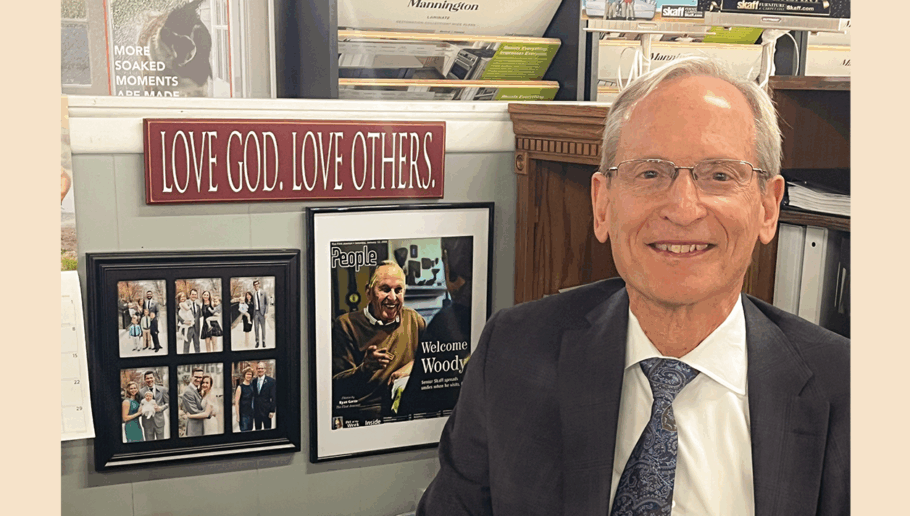 Dick Skaff sits proudly in his office at the Skaff Furniture Carpet One showroom in Mundy Township, in front of artwork and a framed photo of his father, Woody Skaff. | Photo courtesy of Sharon Stone h_citizen 0 By Design2pro on November 24, 2025 Share. Twitter Facebook Google+ Pinterest LinkedIn Tumblr Email
