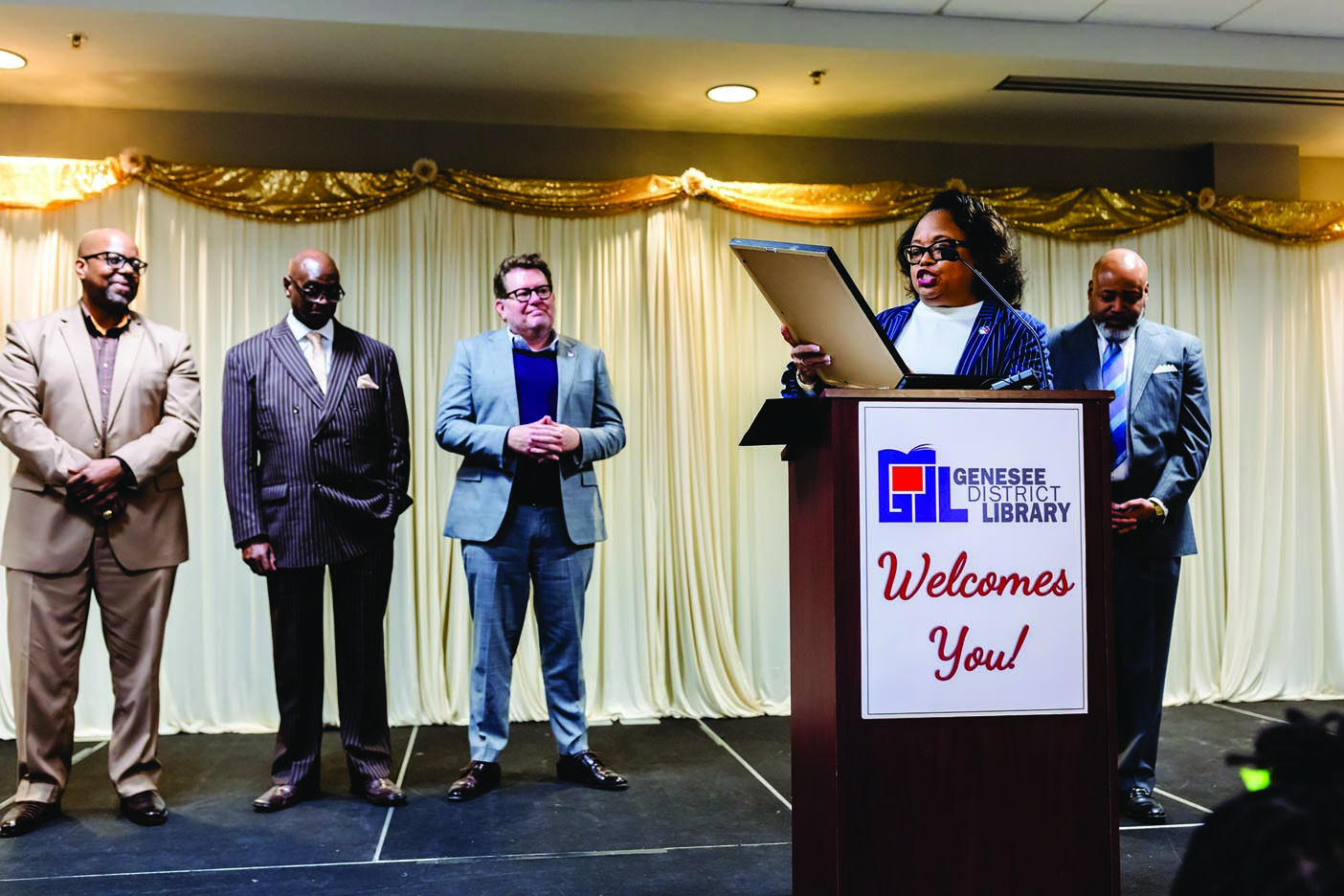 Each year, the Genesee District Library celebrates Black History Month by honoring community members for their good work in Greater Flint. Individuals or organizations can be nominated for the honor, and are then chosen by the GDL Black History Month Brunch Advisory Committee comprised of community members, and GDL staff and Board. Selected individuals receive the GDL Award of Excellence, and selected organizations receive the GDL Partner in Progress Award.