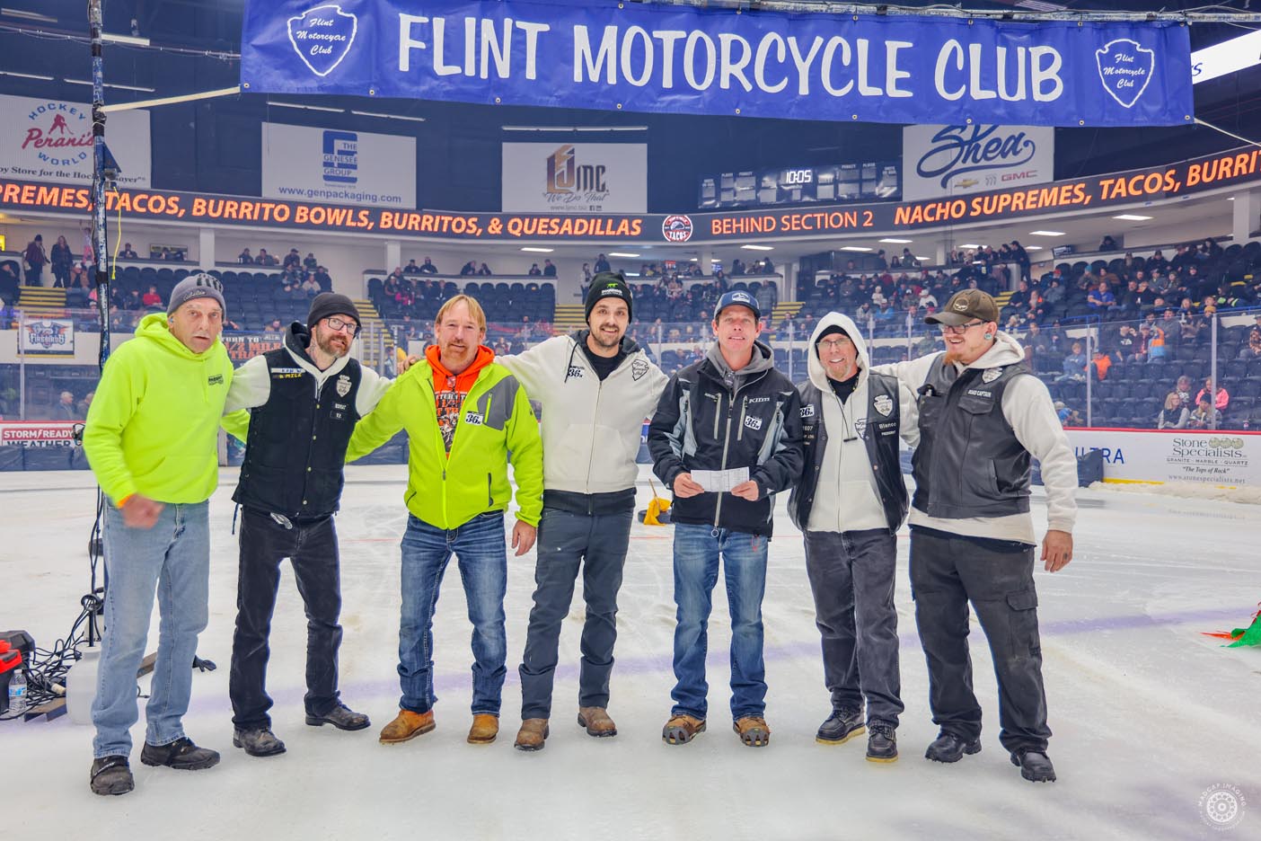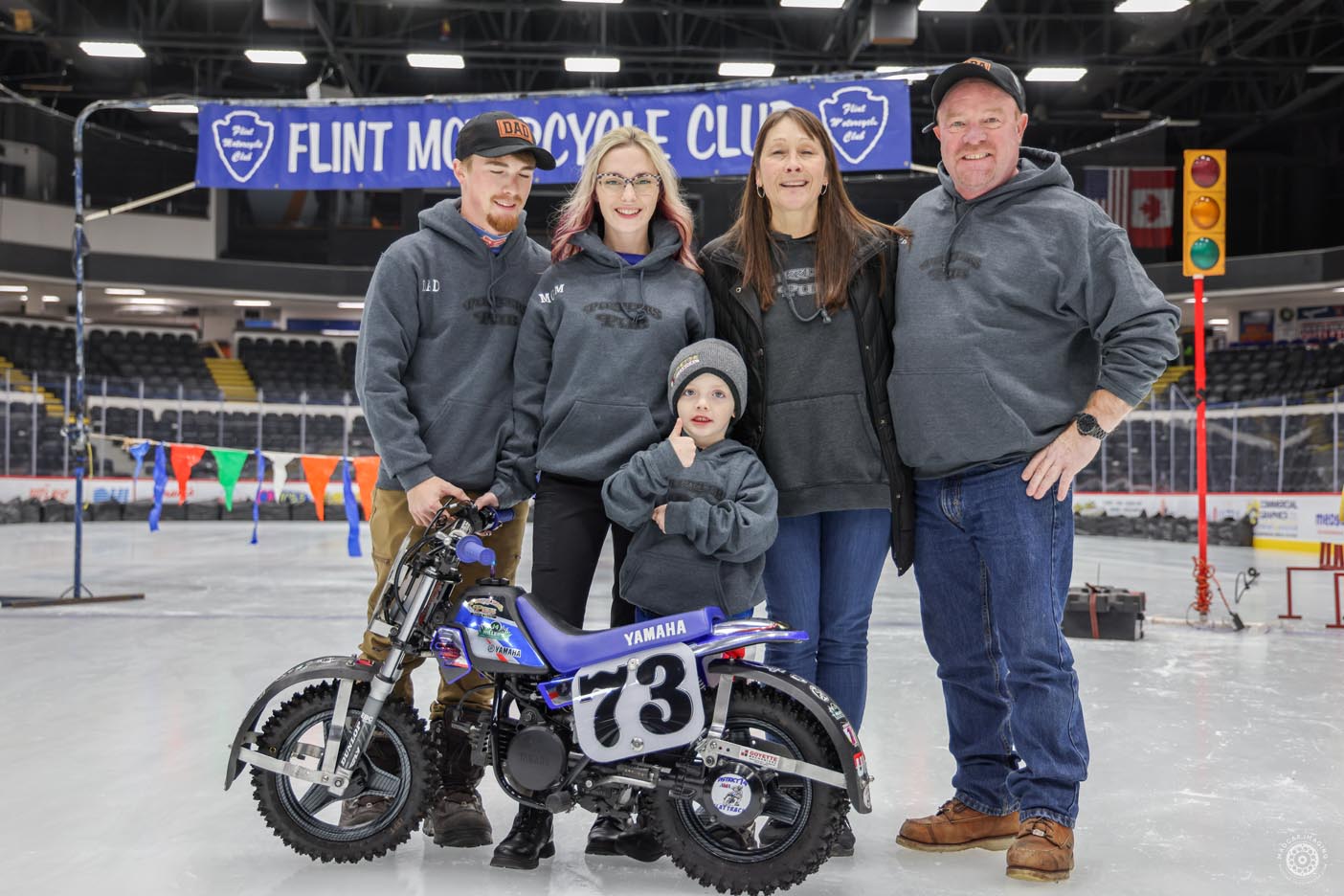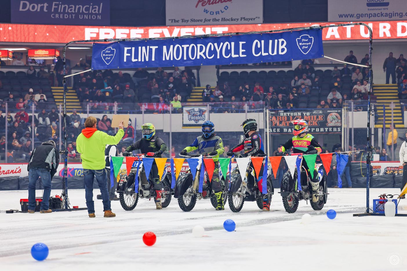 The event featured a patriotic opening ceremony and moving memorial tributes to two special supporters of both BBBS and the Greater Flint motorcycle community. John Zwerican, a lifetime AMA member, served as a rider rep and as president of Lucky Thumb Motorcycle Club, and was involved with Big Brothers/Big Sisters Ice Racing Series. Robert “Bob” Bois was a Big Brother for over 34 years, selflessly giving his time, wisdom and heart to six Little Brothers who, thanks to him, grew up with someone who believed in them. Bob’s dedication didn’t stop there; he joined the Board of Directors in 2006 and worked tirelessly to strengthen the organization, always advocating for what was best for the kids and the community he loved so much. He was a longtime supporter of the Flint Motorcycle Club and the indoor ice races.