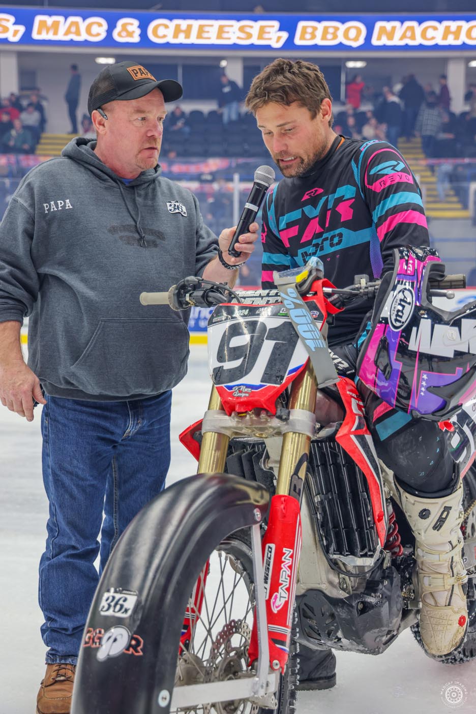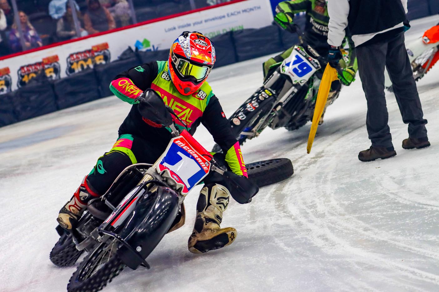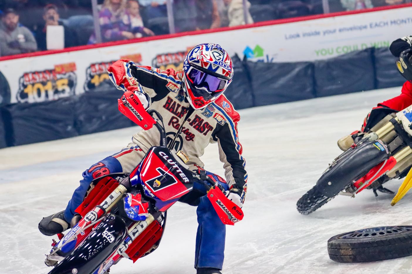 The event featured a patriotic opening ceremony and moving memorial tributes to two special supporters of both BBBS and the Greater Flint motorcycle community. John Zwerican, a lifetime AMA member, served as a rider rep and as president of Lucky Thumb Motorcycle Club, and was involved with Big Brothers/Big Sisters Ice Racing Series. Robert “Bob” Bois was a Big Brother for over 34 years, selflessly giving his time, wisdom and heart to six Little Brothers who, thanks to him, grew up with someone who believed in them. Bob’s dedication didn’t stop there; he joined the Board of Directors in 2006 and worked tirelessly to strengthen the organization, always advocating for what was best for the kids and the community he loved so much. He was a longtime supporter of the Flint Motorcycle Club and the indoor ice races.