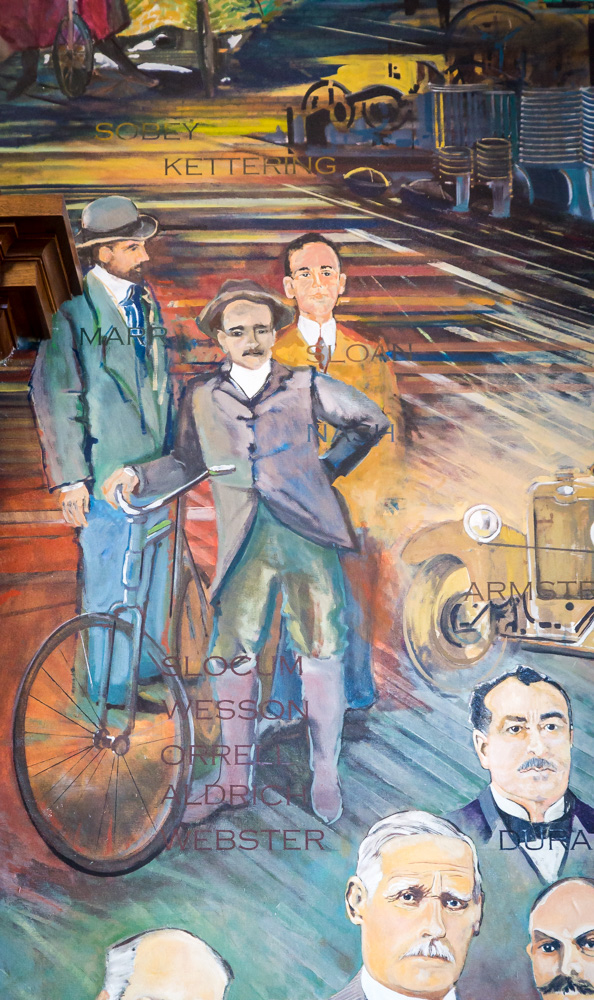 During the Genesee County Courthouse restoration, a mystery was solved, according to Menear. The identity of the artist who created the three original murals had been unknown. Both Menear and Patsy contacted many art institutes, archival sources and libraries, as well as consulting newspaper articles. “We were a team,” Menear shares. “We did all the work.” A trip to the State Archives at the Michigan Historical Center in Lansing was made. On file were minutes from meetings in 1925 and 1926 of the Genesee County Board of Supervisors, which made reference to the courthouse construction. The name of the muralist, however, was not included in the materials.