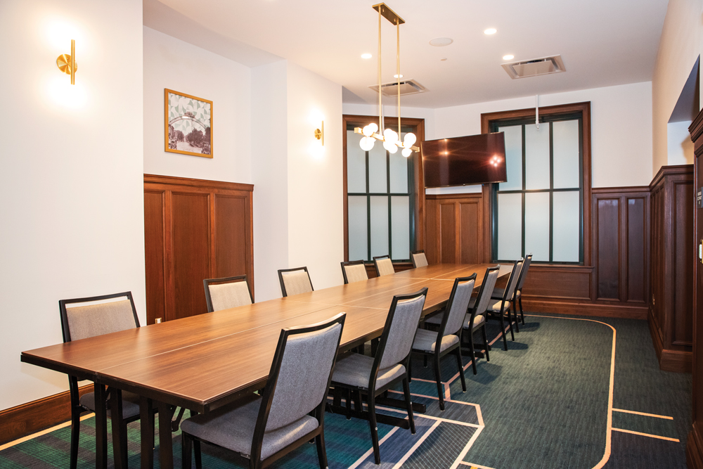 Inside the hotel, Flint’s past and future collide in an impressive display of history and style. “We kept as much of the original building as we possibly could,” explains Herman. “The glass above the restaurant, the staircases, the old doorways, the molding and even the wood paneling in a few of the meeting rooms are authentic from the 20s and 40s. Throughout the building, we even have old mail chutes here and there.” Walking the halls, one gets a sense of returning to the Roaring Twenties in old Flint, when the automobile reigned supreme and the city was growing at a remarkable pace. The historical décor centerpiece is the original bank vault door on display in Sauce restaurant. “It’s absolutely huge! They must have kept a lot of money in there,” laughs Herman. Even the upscale meeting rooms pay homage to Flint’s past, each is named for important pieces of Flint’s history. You can hold meetings in the Mott, Chevrolet, Durant, Dort and Buick rooms.