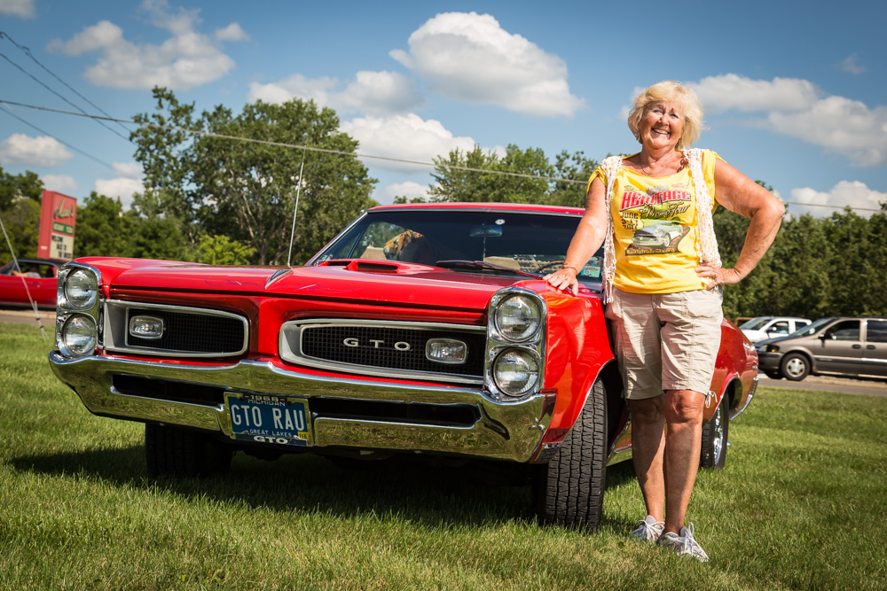 What these gals have in common is that they all love cars and participating in Back to the Bricks. “I come from a family of GM workers,” says Rau, who was born and raised in Flint. “That was our bread and butter, and we learned to love cars.” Back in the day, she used to drag race. “I loved the drag strip. I loved the cars,” she shares, even though she never won a race. “But, it was cool to come home with a number written on the car in white shoe polish.” Rau liked cars so much, she even chose her boyfriends by how “cool” their cars were.