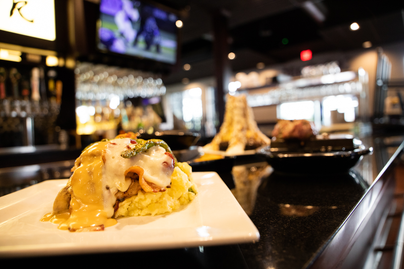 The full-service bar offers craft cocktails, 32 beers on draft and an extensive wine list. Their signature Smoked Old Fashioned combines Maker’s Mark Bourbon, cane sugar and cherries in a cedar-smoked glass. “It’s really cool to see the bartenders make it,” says Simonovic.