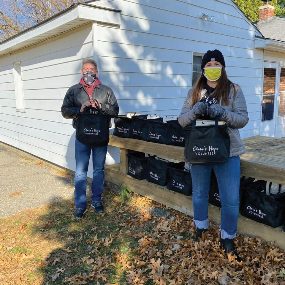 The many volunteers at Clara’s Hope have assembled 300 “first-night foster care bags” – backpacks containing everything a child needs for the first night in their foster home. This is something they work on year-round. Kromer’s daughter, Lillie, has volunteered since the fifth grade with a fundraiser called Socktober, which has collected over 150,000 items for the first-night bags. Volunteers also provide a monthly meal to connect with a foster/adoptive family. “We want to make sure the family is seen, heard and loved,” Kromer says. During the 2020 pandemic, Clara’s Hope provided approximately 420 meals to families.
