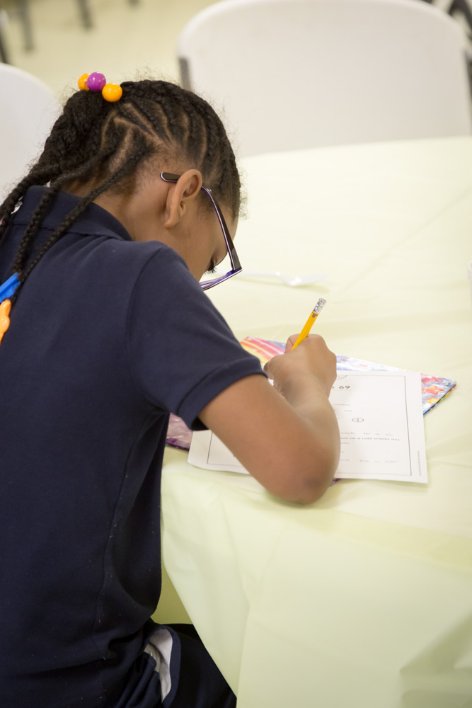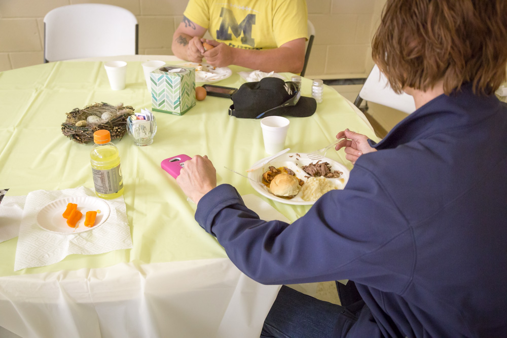 Across Genesee County, 15 churches of all denominations host homeless families, giving them an evening meal and a place to sleep. Family Promise owns 14 beds, which travel to each of the host churches. “Church volunteers provide the dinners, and the families become guests in the truest sense,” explains Moore. “The volunteers and guests eat dinner together in a family-style setting. There is a strong sense of community.” Volunteers are encouraged to bring their own children to the meal, because kids are a priority of Family Promise. The Day Center is closed on Saturdays, as most of the families have relatives and friends in the area and spend most of their weekends with them.