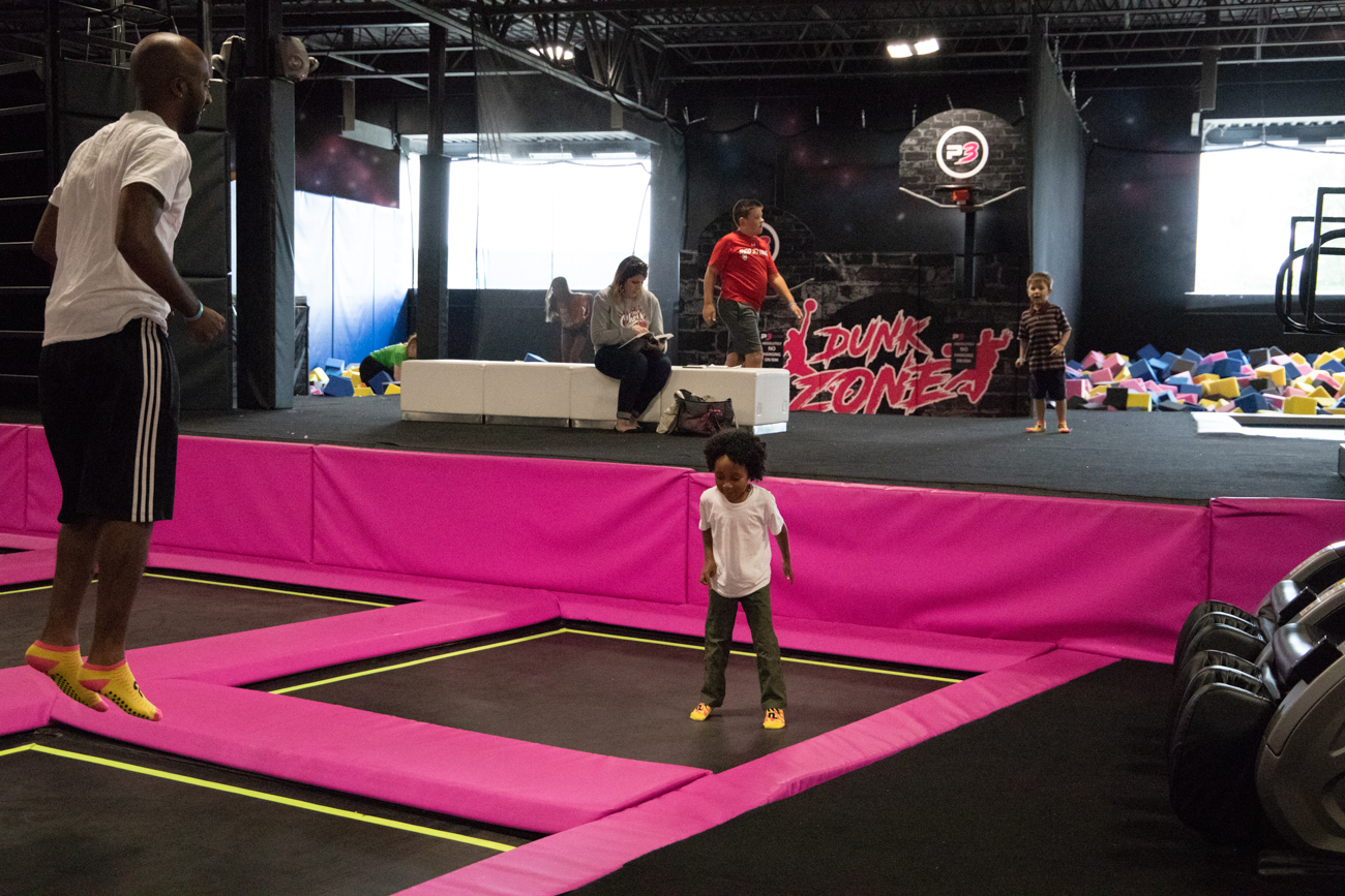 Besides the main trampoline deck, the facility offers a dunk zone, swinging trapeze, a joust station, balance strap, climbing wall, cargo net and six-foot-deep, foam-filled pits for safety. If that’s not enough, P3 also offers a trampoline dodgeball court and a zip-line. “We are the only P3 trampoline park with a zip-line,” says Mark. “It’s one of our most popular attractions.” The youngest are not left out – P3 also boasts an area created exclusively for jumpers under the age of six. The facility’s total jump area feels absolutely huge, and kids can spend a whole day playing there and still miss a station or two.