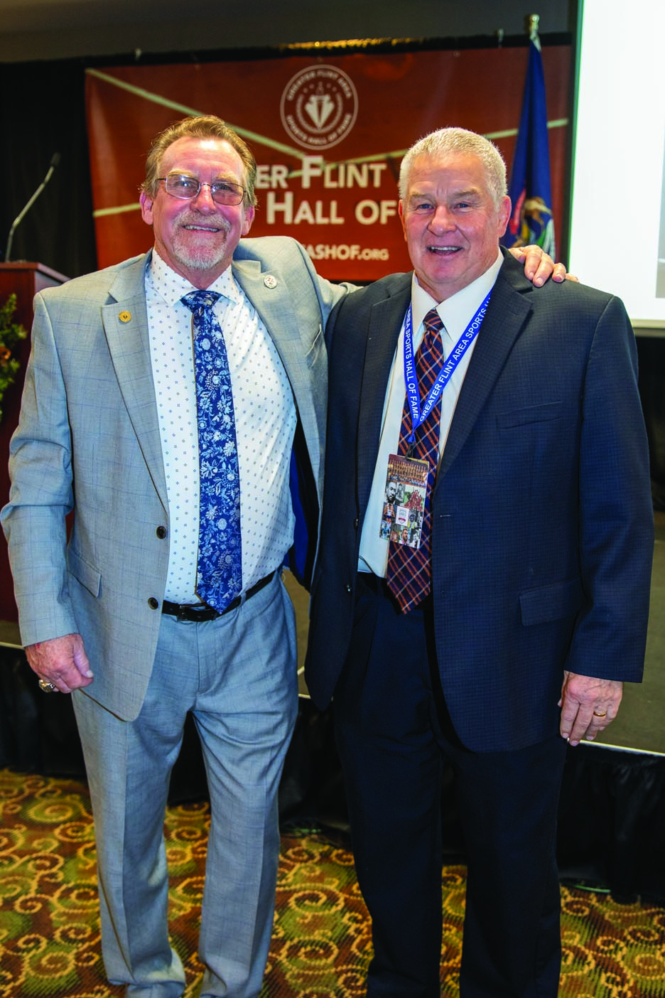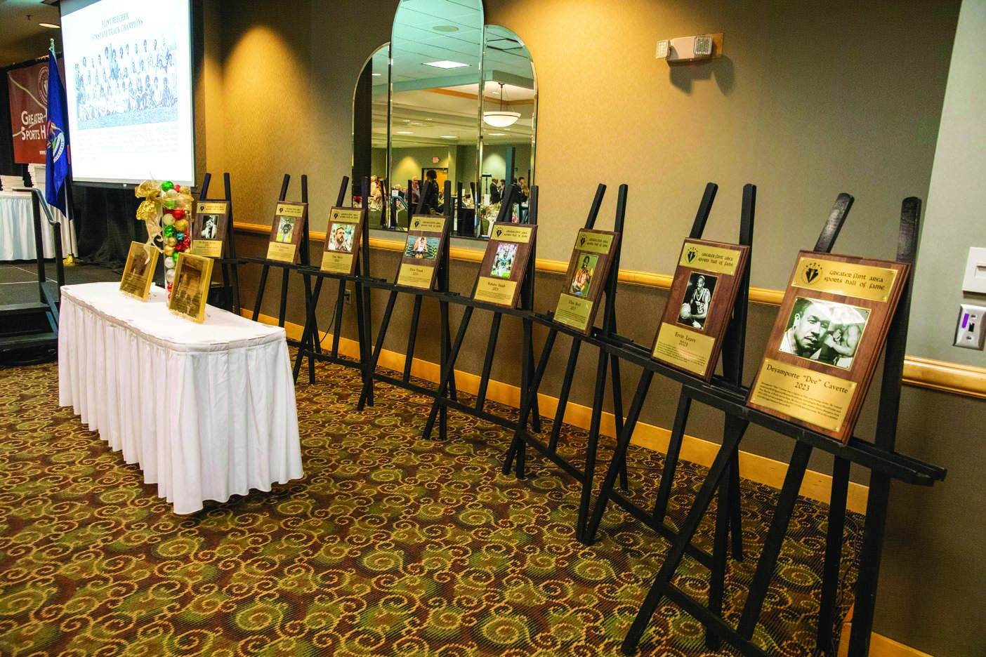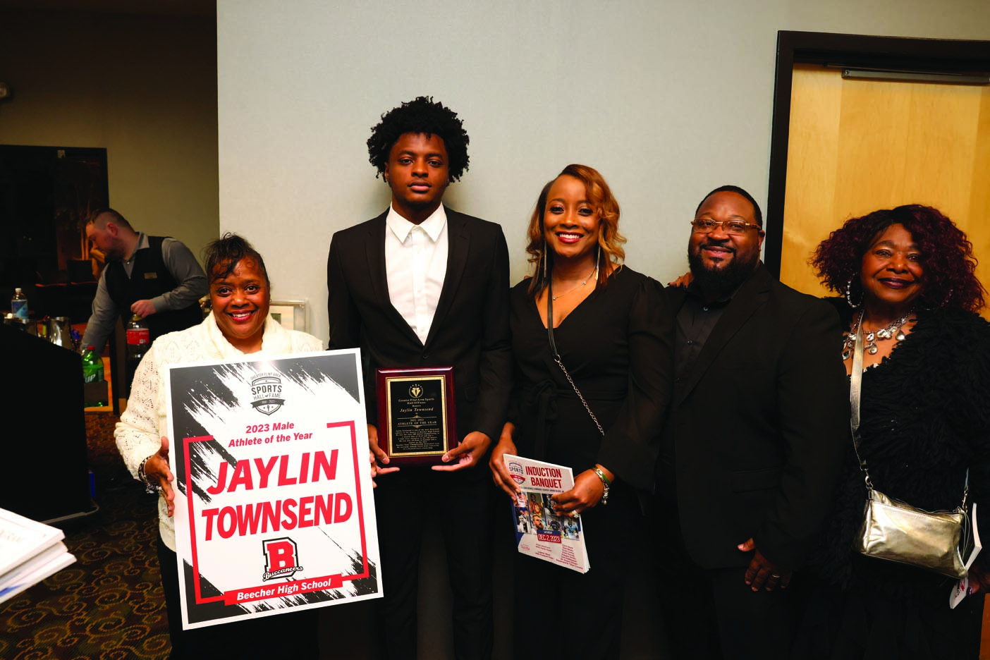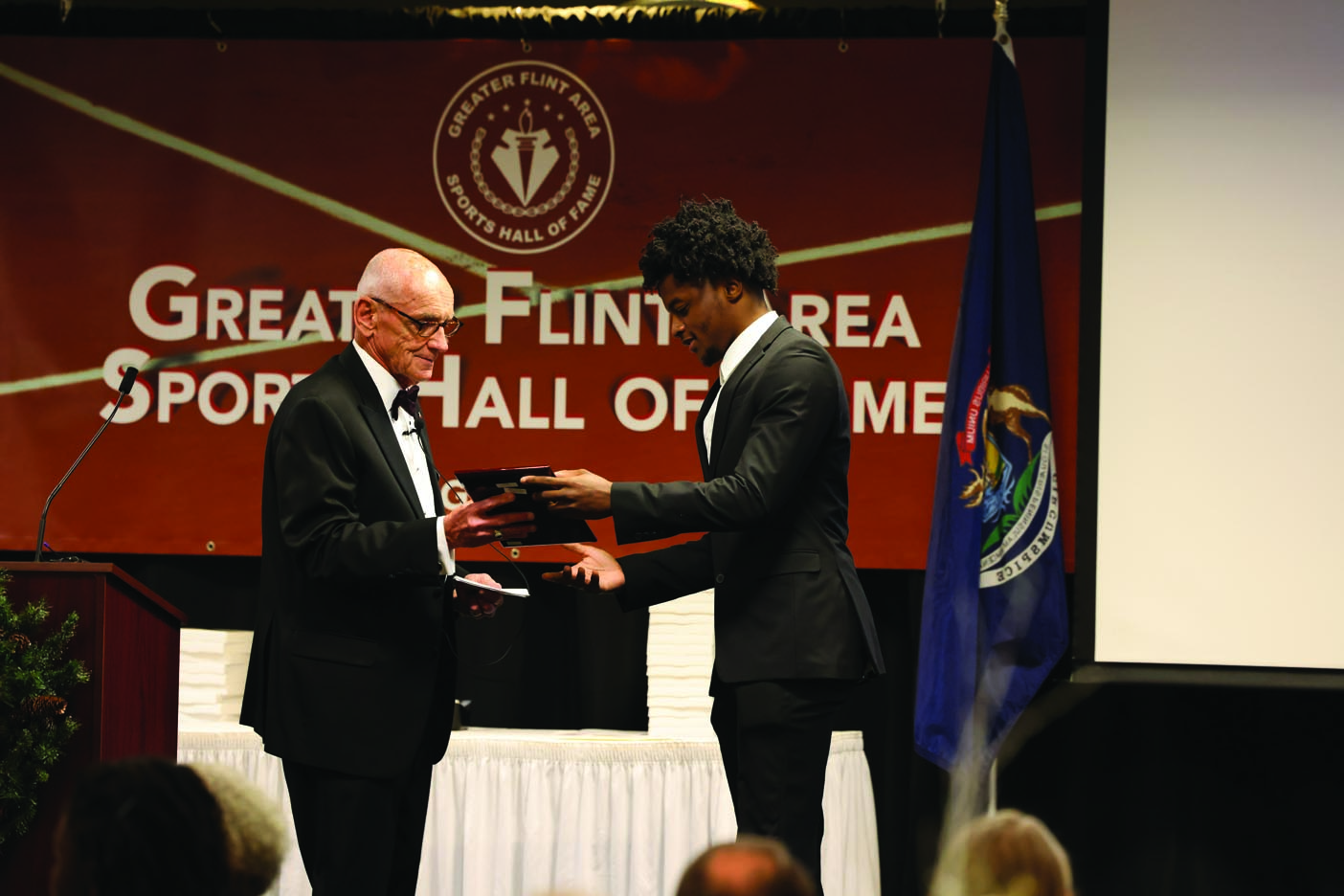 At the formal 2023 ceremony, the honorees included: Boxers Chris Byrd (Flint Northwestern) and Deyamporte “Dee” Cavette (“Mr. Golden Gloves”); Ervin Leavy (Flint Central Basketball), Rower Ellen Tomek (Powers Catholic), the 1976 Flint Northern Class A State Champion Track & Field Team, Robaire Smith (Flint Northern Football/Basketball), Dan Skuta (Carman-Ainsworth Football), Coach Tom Dutkowski (Powers Catholic Baseball), Former Educator Dr. Duane Brown (“Father of Blooper Ball”), Lapeer West 1995 Class A Football State Championship Team, Travis Perry – 2023 Coach of the Year (Powers Hockey, 2023 State Champs), Kate Brody – 2023 Female Athlete of the Year (Grand Blanc Golf) and Jaylin Townsend – 2023 Male Athlete of the Year (Beecher Track & Field, Basketball, Football).