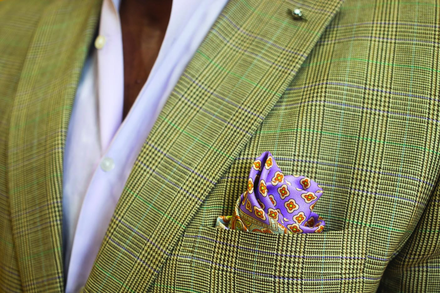 I would have to say it is a lilac paisley print handkerchief that belonged to my father and is at least 40 years old. I also love to wear his gold pocket watch.