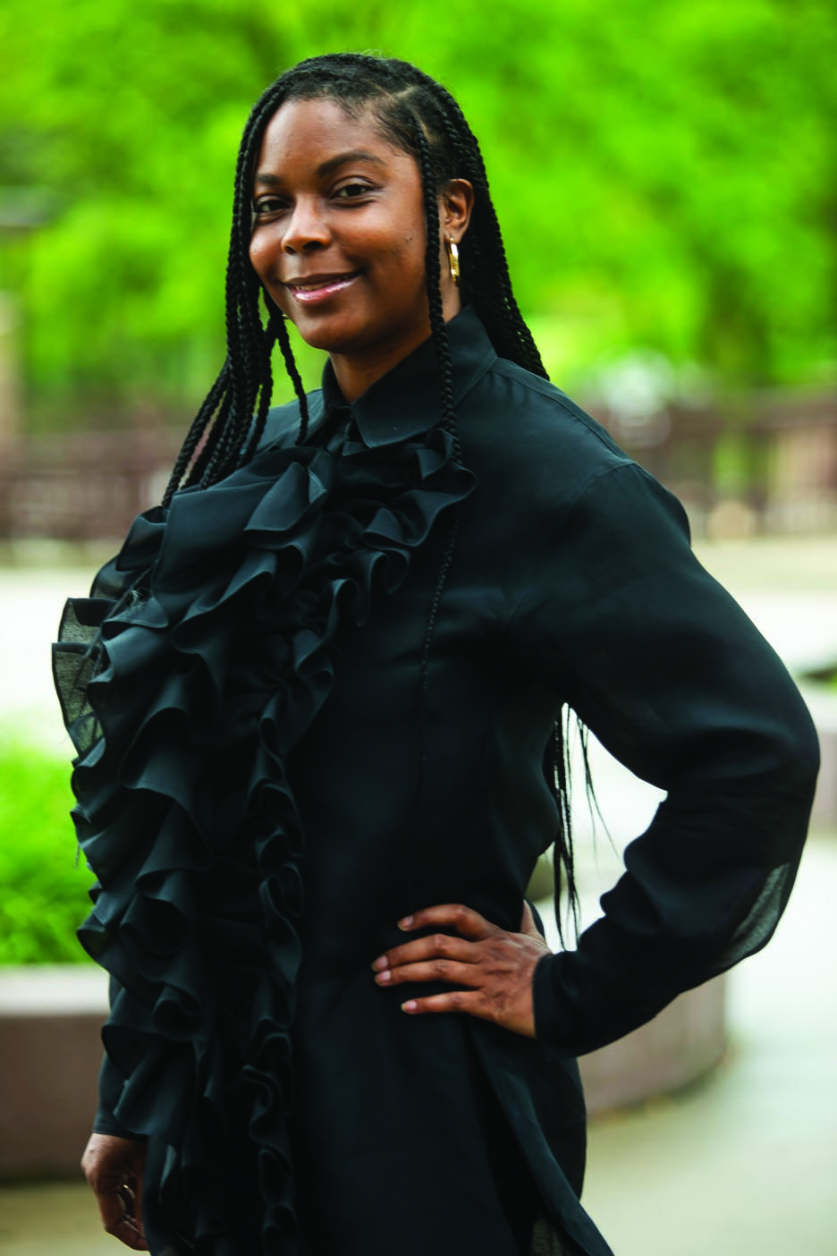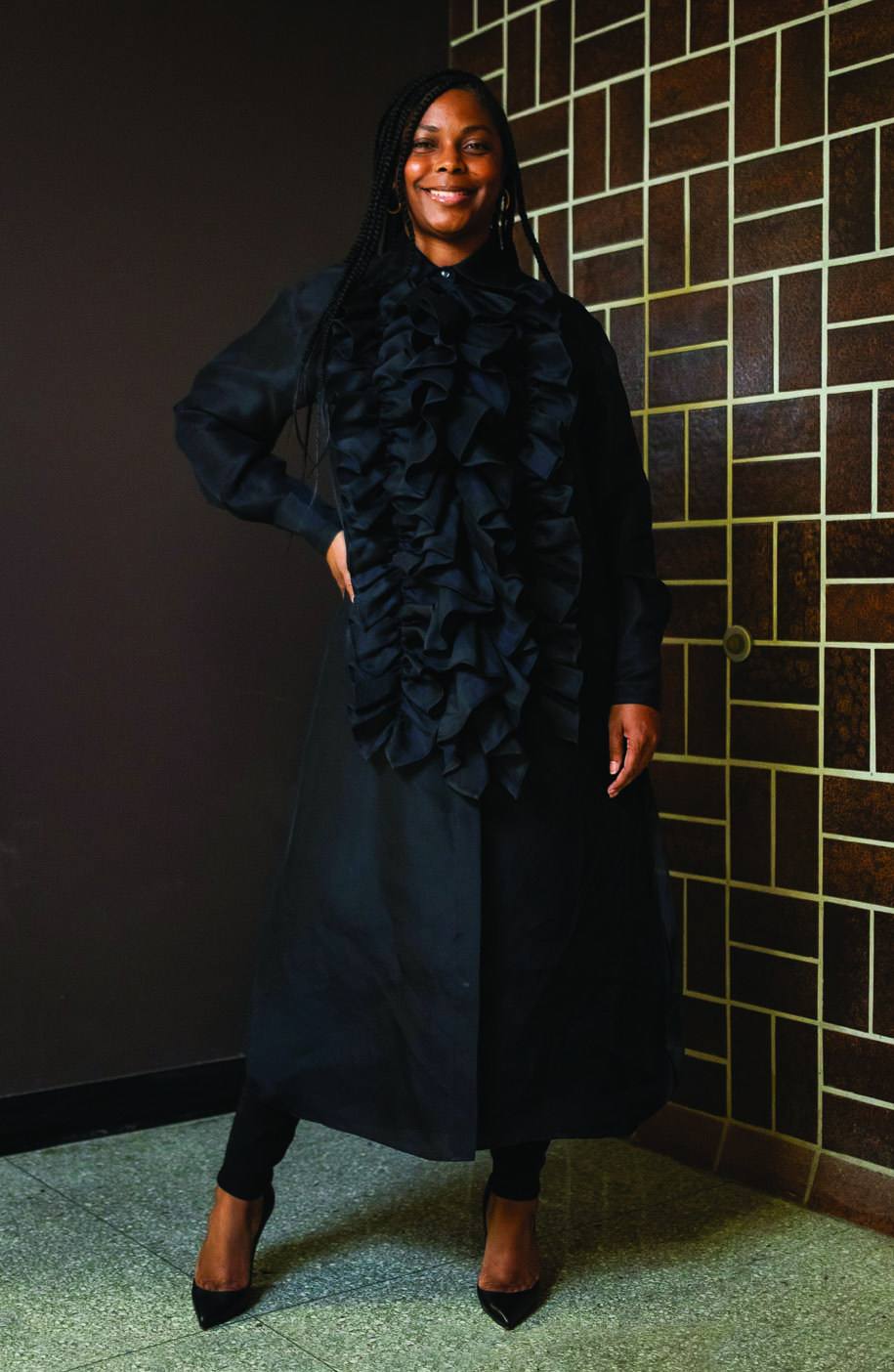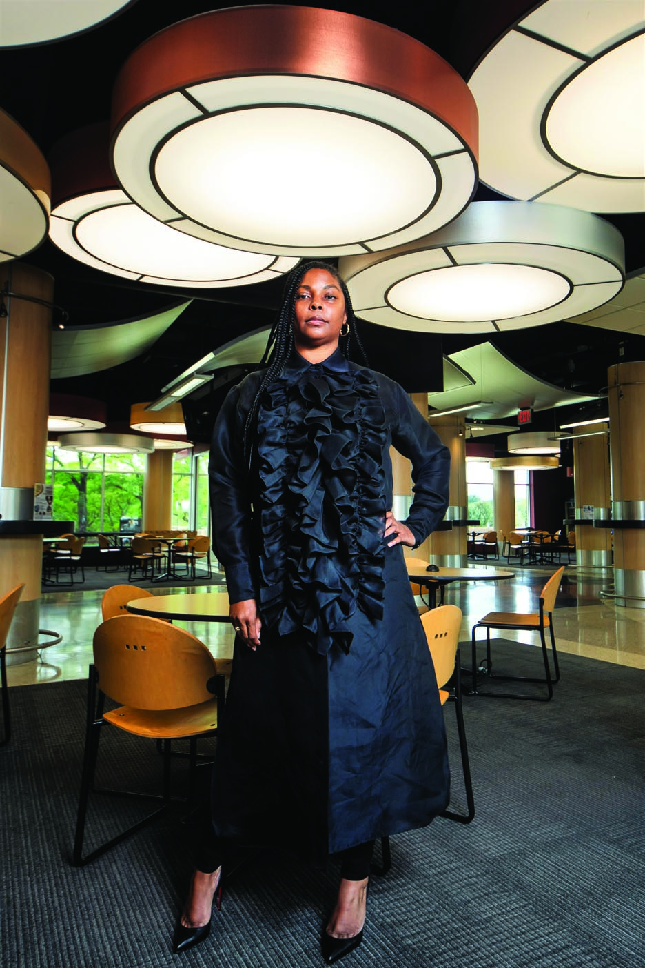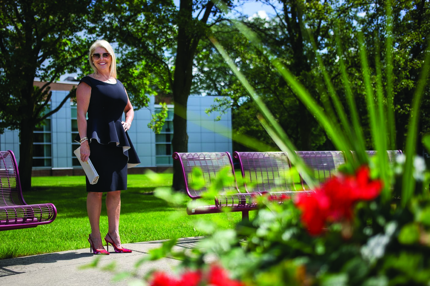 Our Best Dressed features highlight local people who were nominated because they have a sense of style that makes a statement: fashion forward, professional, effortless or dramatic … their looks let elements of their personalities shine through. We were granted an opportunity to take photos on the campus of Mott Community College, which celebrates their centennial this year. Our thanks to Marketing & Communications Manager, Bob Campbell, for his assistance with access to the locations.