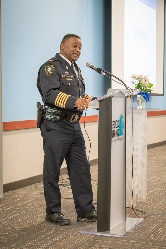Genesee County kicked off its campaign to raise awareness of child abuse and prevention at the Prevention Partner Breakfast, sponsored by the Weiss Advocacy Center, on March 29. The purpose of the breakfast was to educate community members about child abuse prevention and to recognize the businesses and organizations who are partners in the cause. Community leaders, including Congressman Dale Kildee, Flint Mayor Karen Weaver, Genesee County Assistant Prosecutor Sara Coaster and Flint Police Chief Tim Johnson all spoke at the event. “Child abuse is very strong in our community,” said the police chief. “Please don’t hesitate to call us and report it. That’s our job and we have no problem doing it.”