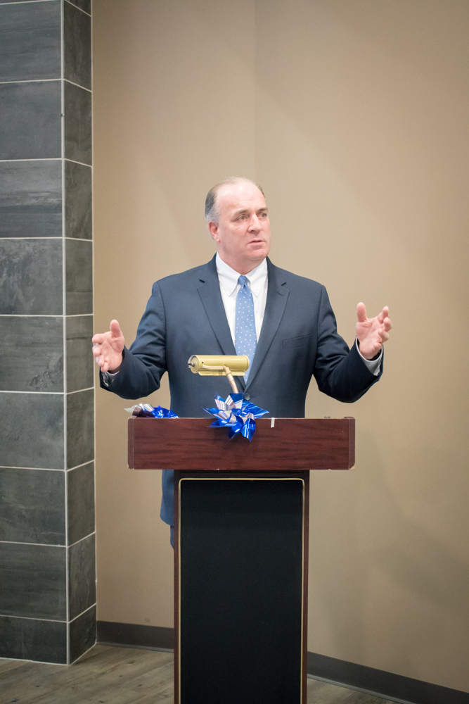 Robert Ennis of the Ennis Center told the audience the blue pinwheels represent “kids being kid,” and he urged the community to participate in Wear Blue Day on April 20. Funding for prevention all comes through the community,” he said. “Child abuse has no color. We have a ton of work to do and it’s getting worse. We need more resources and more money.”