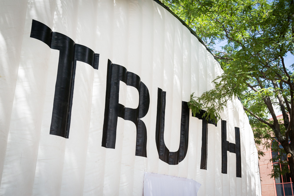 If you’re in search of truth, it might just reside inside a 15-foot tall, inflatable speech bubble.