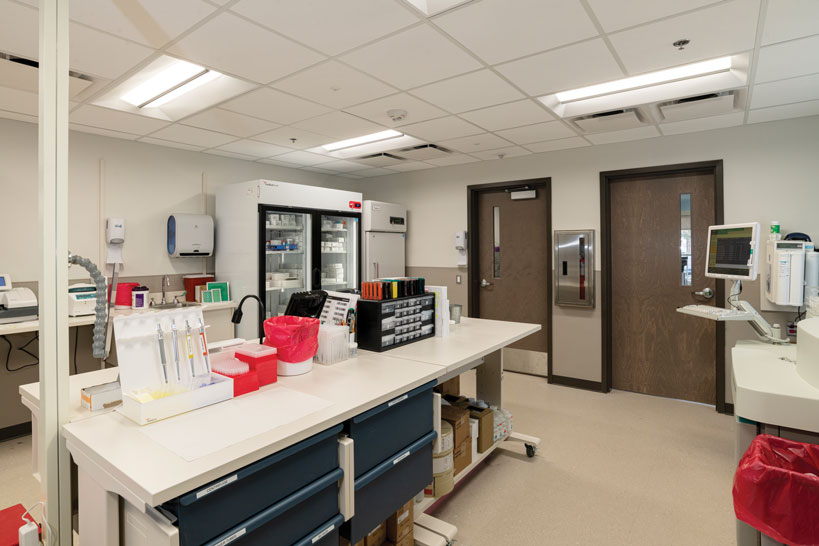 A: The building’s entire 24,000 square-foot interior was renovated. The ER is approximately 12,000 square feet and includes 17 exam rooms, three trauma bays, and observation and isolation rooms. To support the ER, space was designated for a full-service lab, as well as a suite for comprehensive imaging services. The primary care clinic is also approximately 12,000 square feet and can accommodate multiple providers each day with 24 exam rooms, a procedure room, a spacious waiting room and access to the lab and imaging services.