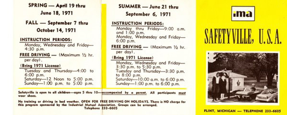 The Industrial Mutual Association (IMA) built Safetyville and operated it from 1963 to 1978. The City of Flint then took over operations and re-named it Safetyville, USA.