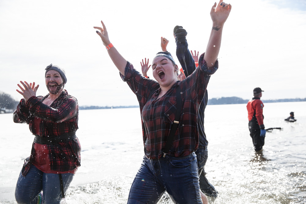 Although the ice was not completely frozen due to the unseasonably warm weather, the Polar Plunge was still deemed a success by Pat Peters. “Once again the community comes through,” Peters said. “There were also a lot of great costumes, and people had a lot of fun.”