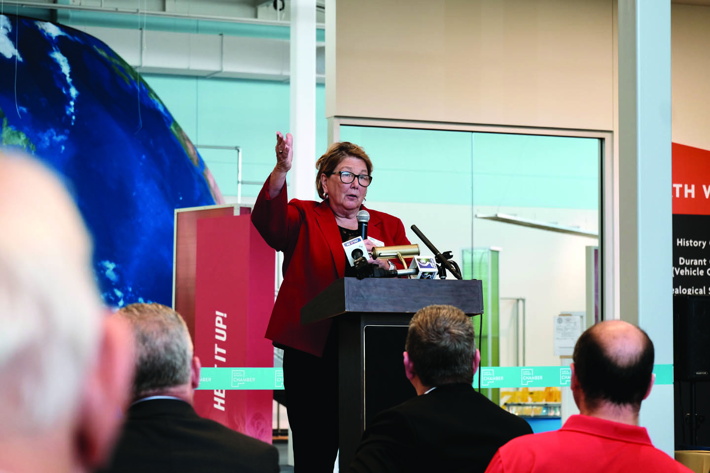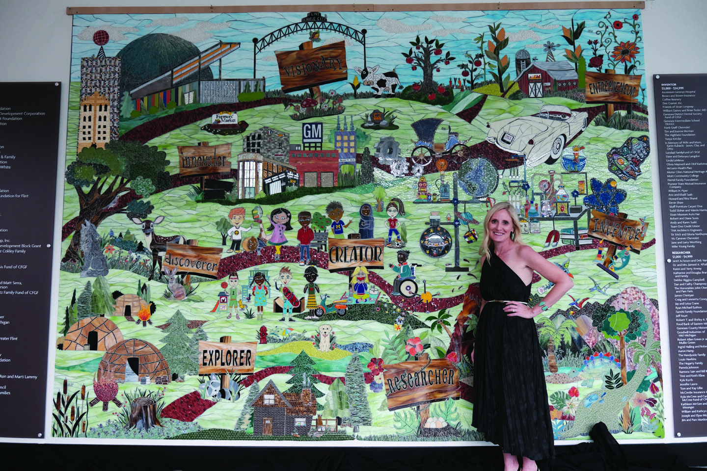 After nearly five years of planning and construction, the new Sloan Museum of Discovery re-opened to the public during a Grand Opening weekend July 16-17. The big day was preceded by a private Donor Preview event on July 12 that was highlighted by the unveiling of the Donor Wall and mosaic created by local artist, Amy Sutkowi. On July 14, an official Media Event and Ribbon-cutting Ceremony took place, attended by many local dignitaries and followed by tours of the facility. The $30 million expansion and renovation features four science, history and hands-on learning exhibits. Museum admission is free to Genesee County residents.