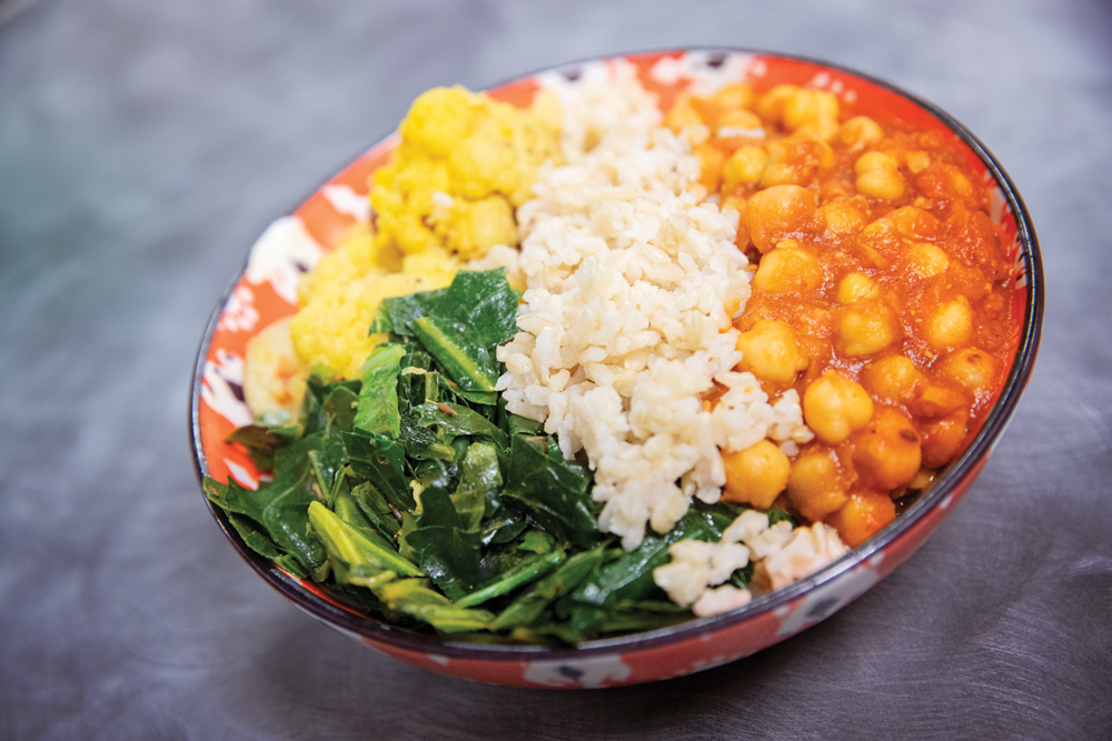 The vegan cook opened Sweet Peaces in July 2014. She and her husband do all of the food preparation with the help of two other employees. Deepak, who is from Nepal, has brought Nepalese cuisine (which is similar to Indian fare, but healthier without the use of rich creams) to the restaurant. Eaton describes the food they make as “internationally-inspired, plant-based cuisine.”