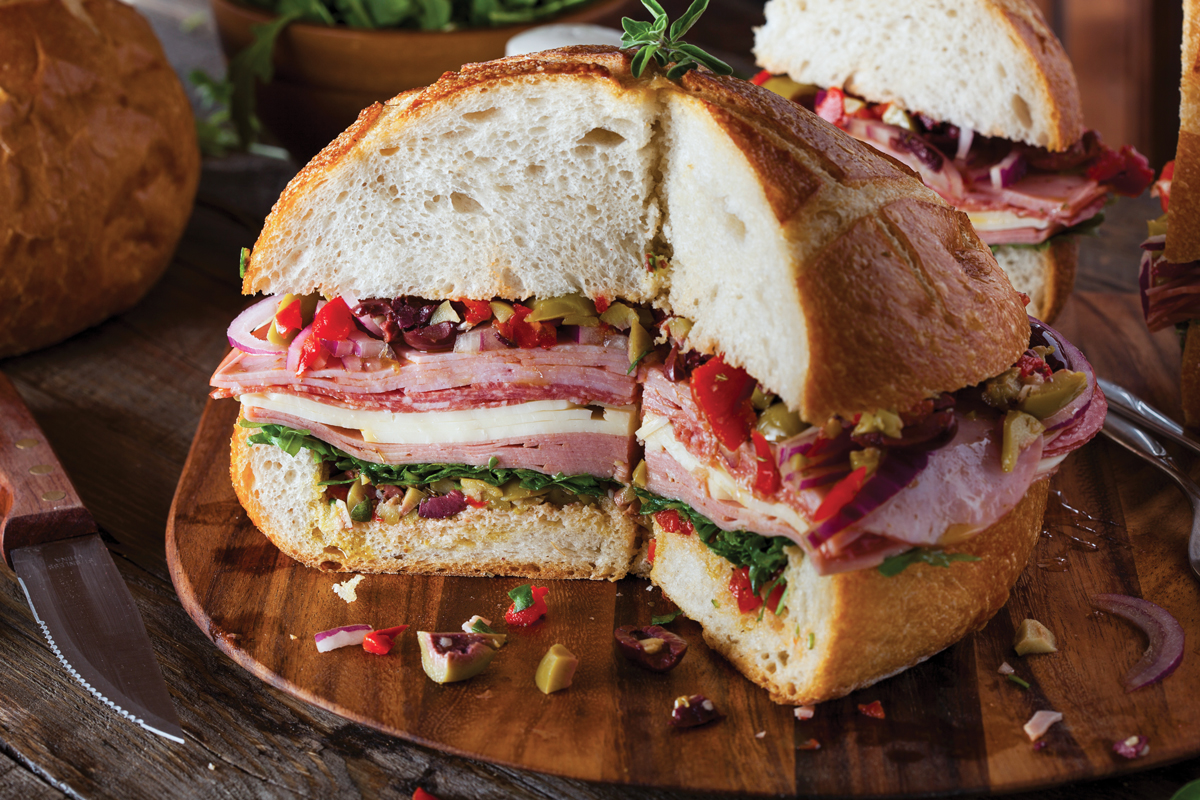 One of the new items on the carryout menu is a whole baked muffuletta, which feeds 8-13 people. The delectable sandwich is made with Italian hero-style cold cuts, olive and tomato salad, fontina and mozzarella cheeses and a red wine vinaigrette.”Muffuletta is an amazing bread!” the general manager exclaims. It can be sold by the slice or the whole sandwich, which is cut like a pizza. The carryout menu also features a variety of calzones, panini sandwiches and authentic Italian pizza pies.