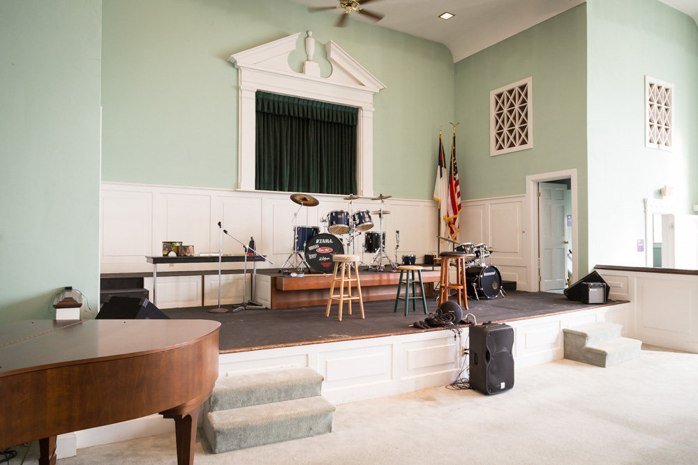 Another current project will transform the church’s congregation area into a music and art performance space. “It’s a huge space and when you are in here at night, with the lights on the stage and the stained-glass windows, it is really cool,” Anne shares. They are also expanding the stage to make more room for dance performances.