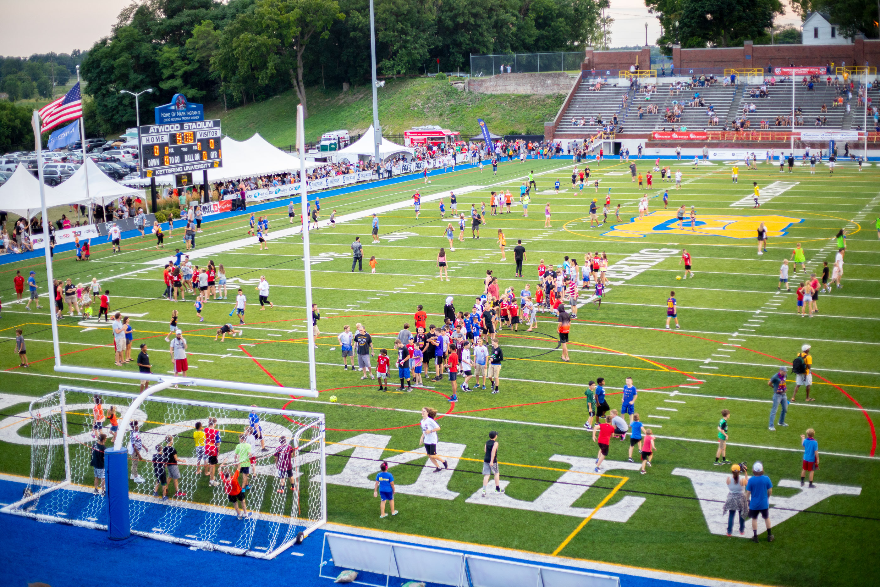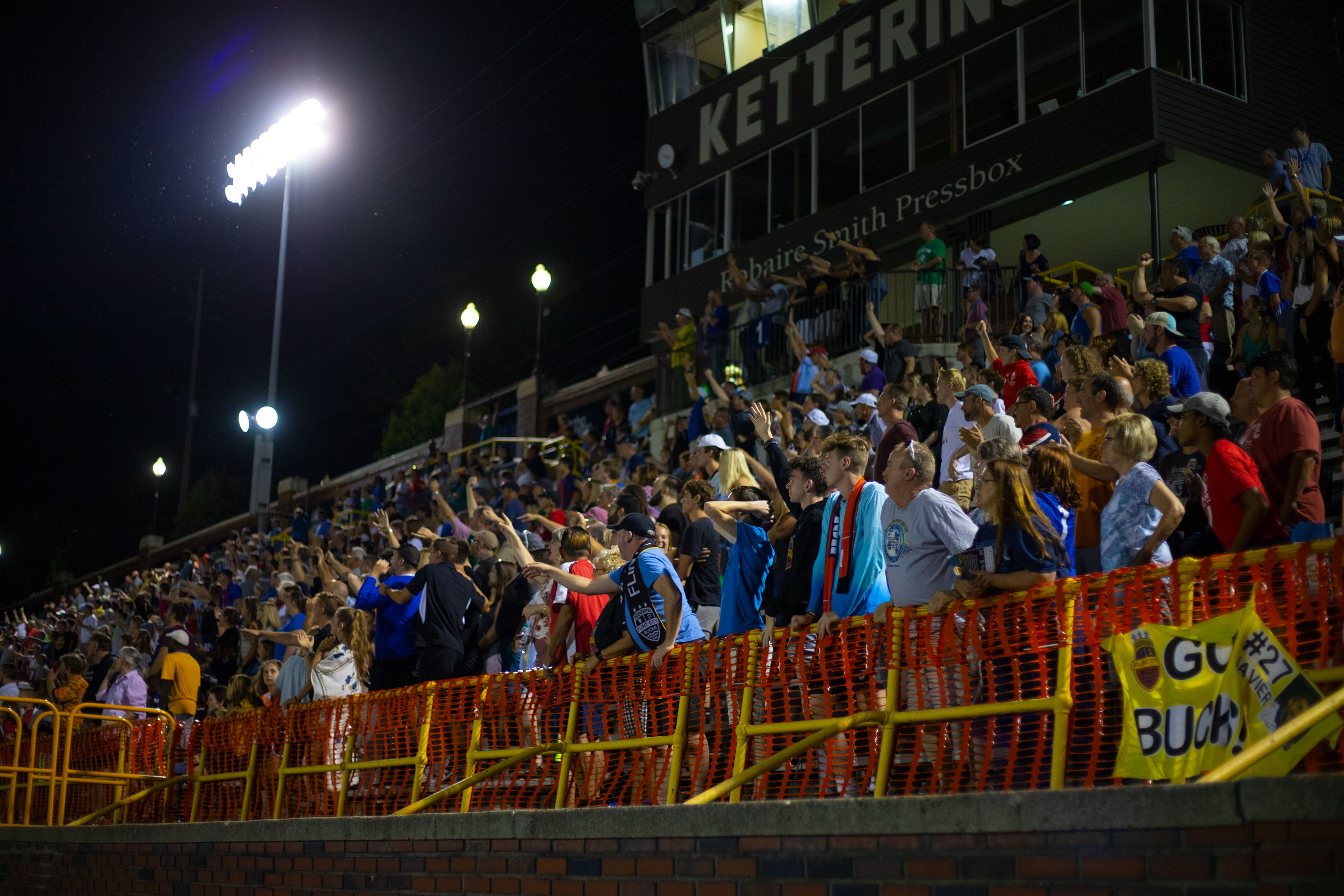 On August 3, Greater Flint soccer enthusiasts turned out to support the Flint City Bucks as they squared off against Reading United (PA) for the USL2 National Championship. A record-breaking 7,200 fans cheered, sang, danced and celebrated as forward, Ayuke Tambe, scored the game’s only goal on a penalty kick in the second overtime. After a nervy ten minutes, the final whistle blew and Flint City had become champions. Fans stormed the pitch and crowded around the stage near midfield as the team and city were presented with the championship trophy.
