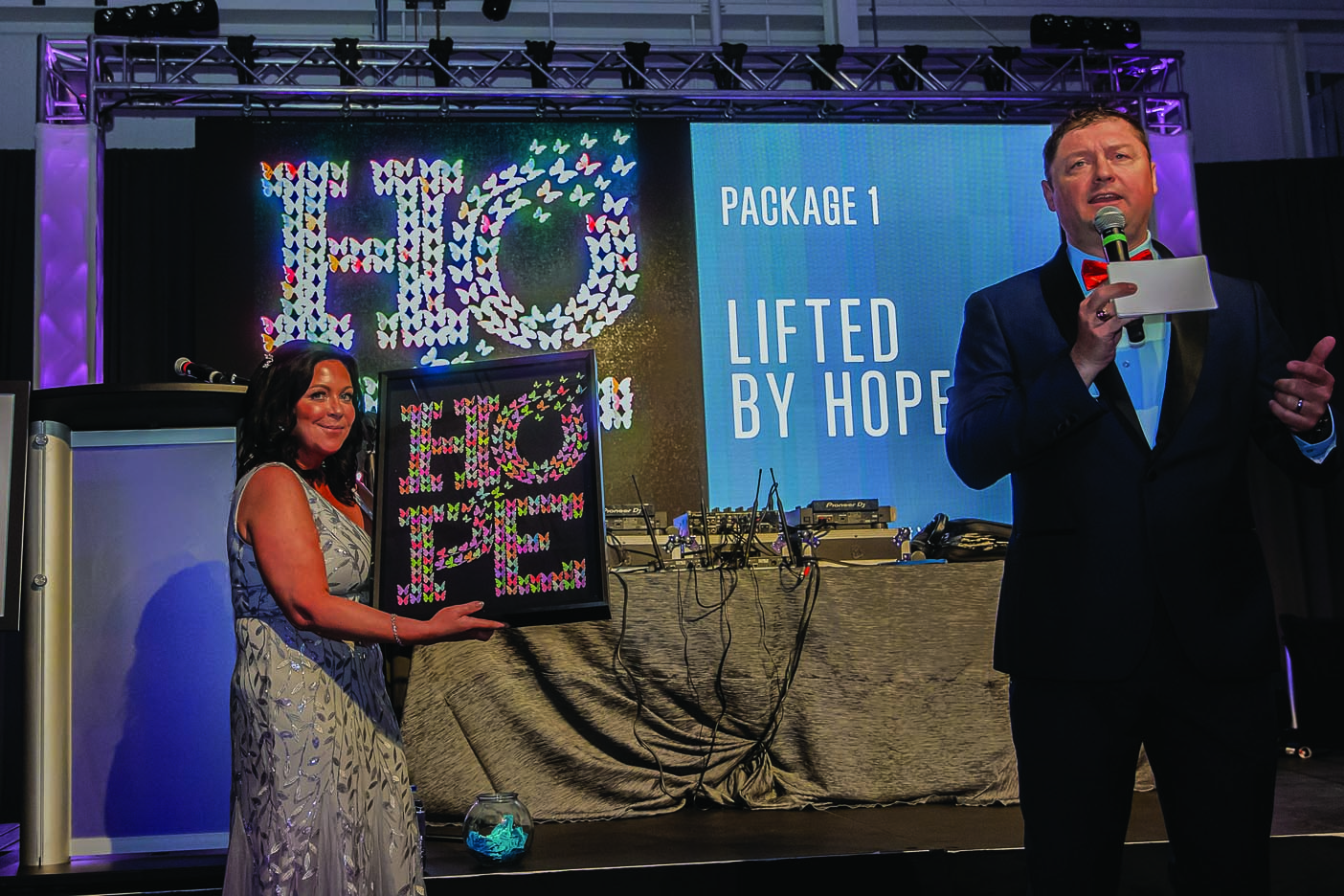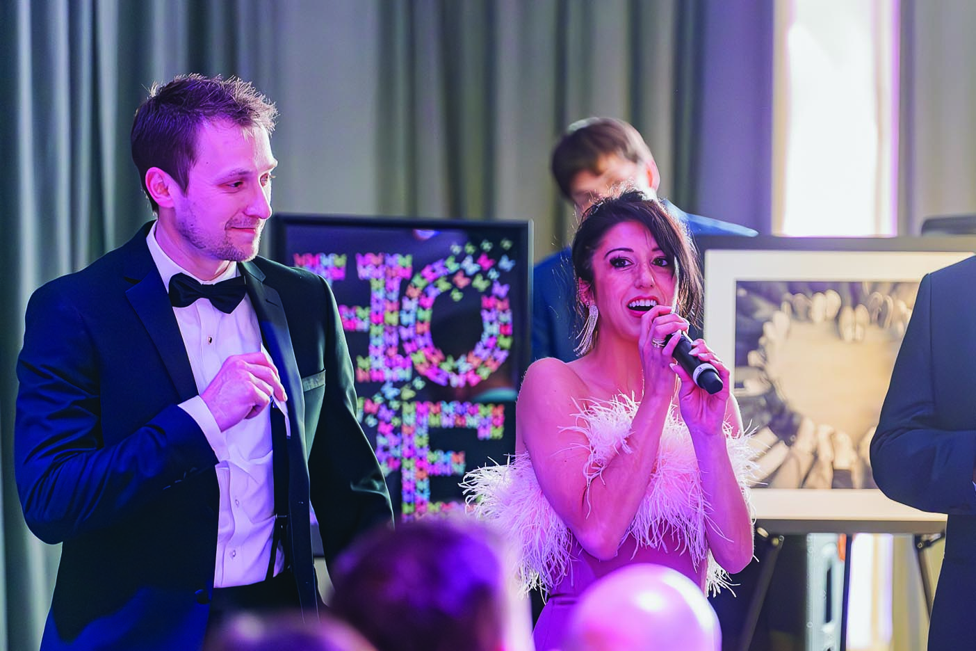 The night began with an elegant champagne cocktail reception in the gleaming auto showroom space, where guests mingled in high style before being ushered into an unexpected transformation: the dealership’s service department had been turned into a stunning, whimsical venue that set the stage for the magical moments ahead.