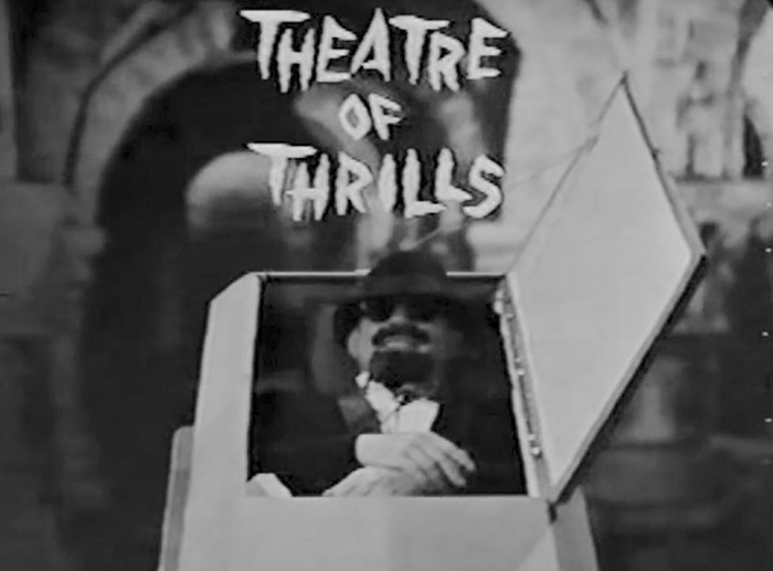 Perhaps the most memorable Channel 12 program was Theatre of Thrills. Airing late Friday nights from 1963 to 1967, the show featured classic black-and-white horror, monster, and science-fiction films produced on modest budgets from the 1930s through the 1950s. The program was hosted by the menacing “guardian of the ghouls,” Christopher Coffin—a character portrayed by WJRT announcer Reed Farrell. It left a lasting impression on local viewers.