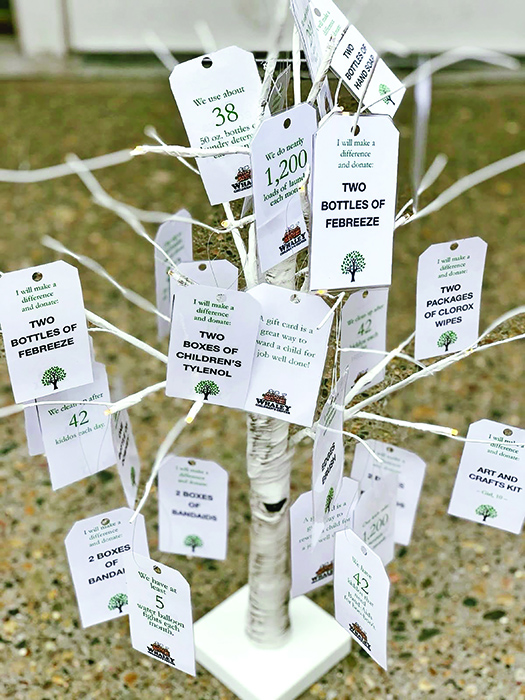 Unlike seasonal donation drives that focus only on the holidays, the Giving Tree Program is a continuous opportunity for involvement. The concept is simple: Whaley delivers a tree to a participating organization, complete with tags listing specific needs.